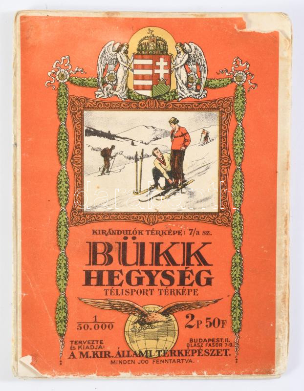1931 Bükk hegység télisport térképe, Kirándulók térképe 7/a., 1 : 50.000, Bp., M. Kir. Állami Térképészeti Intézet, kisebb sérülésekkel, 68x76 cm