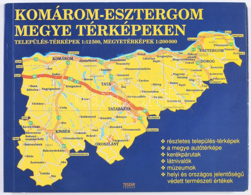 1996 Komárom-Esztergom megye térképeken. Település-térképek 1:12500, Megyetérképek: 1:200.000. 1996, Erina Gmk., 88 p.+1 t. Kiadói papírkötés, karcos borítóval.