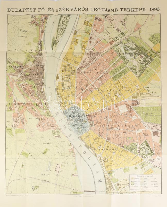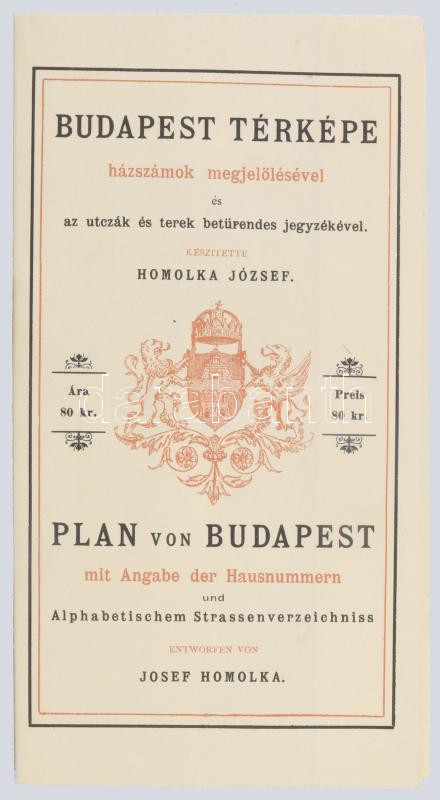 Budapest térképe házszámok megjelölésével és az utcák és terek betűrendes jegyzékével, készítette: Homolka József, RERPRINT!, 63×80 cm