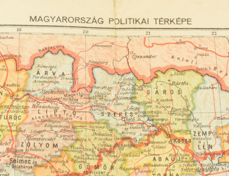 [Térkép] Magyarország politikai térképe a bécsi döntések, a kárpátaljai és délvidéki bevonulások után. Mértéke: 1:2,500.000. (1943).