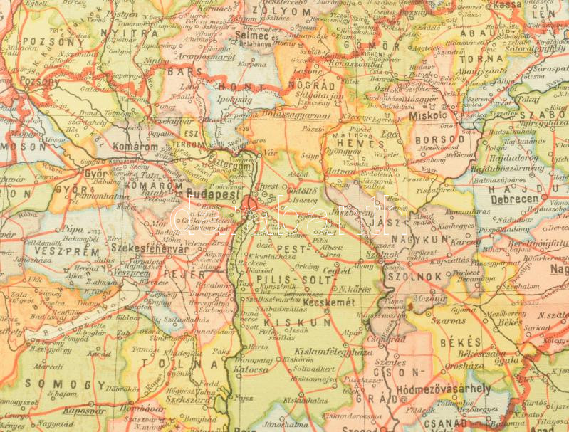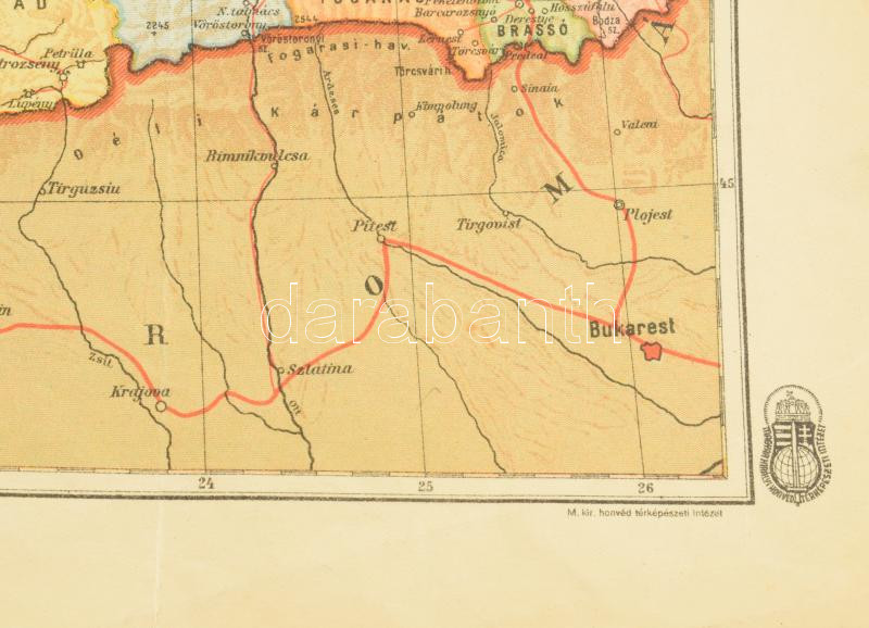 [Budapest], 1943. Kókai Lajos - M. Kir. Honvéd Térképészeti Intézet. Színes térkép, mérete: 250x380 mm egy 300x435 mm méretű térképlapon.