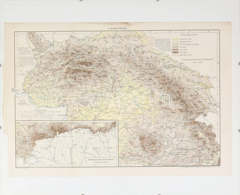 cca 1900 A Kárpátok térképe, Pallas Nagy Lexikona, Bp., Posner, üvegezett keretben, hajtott, kis szakadással, kis folttal, 31x46 cm, keret: 40x51 cm