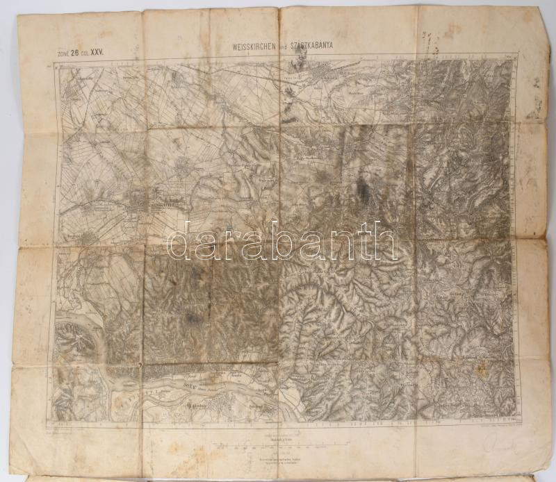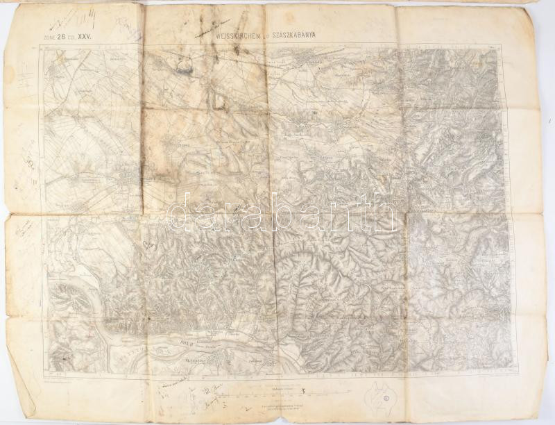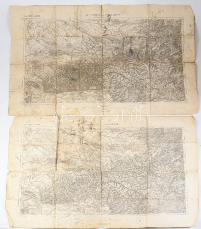 cca 1900 Fehértemplom (Weisskirchen) és Szászkabánya környéke, 2 db (egyforma) katonai térkép, viseltes állapotban, feljegyzésekkel, 47,5x61,5 cm