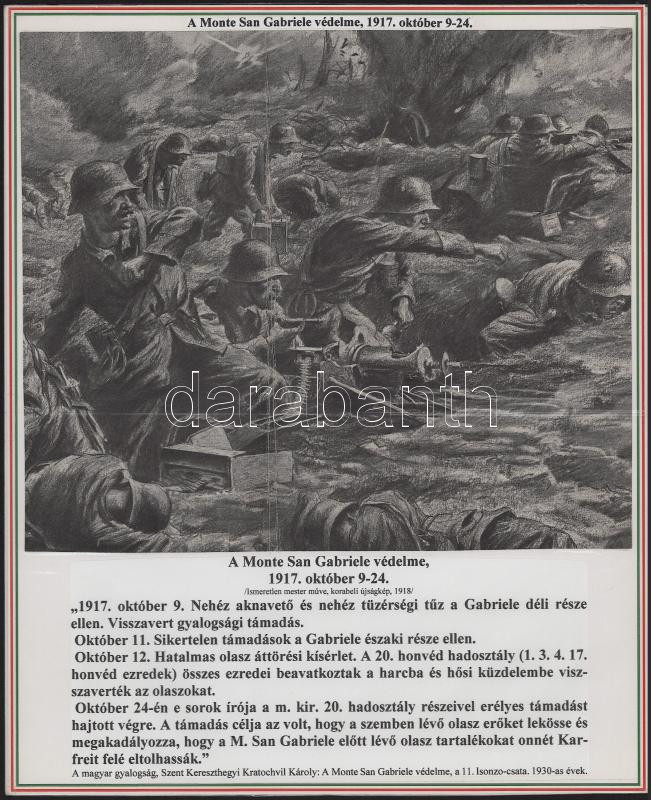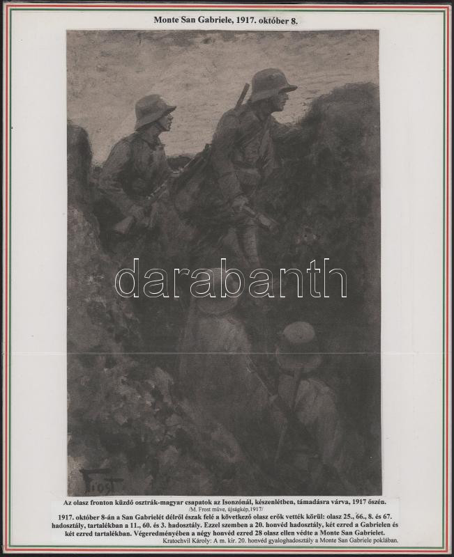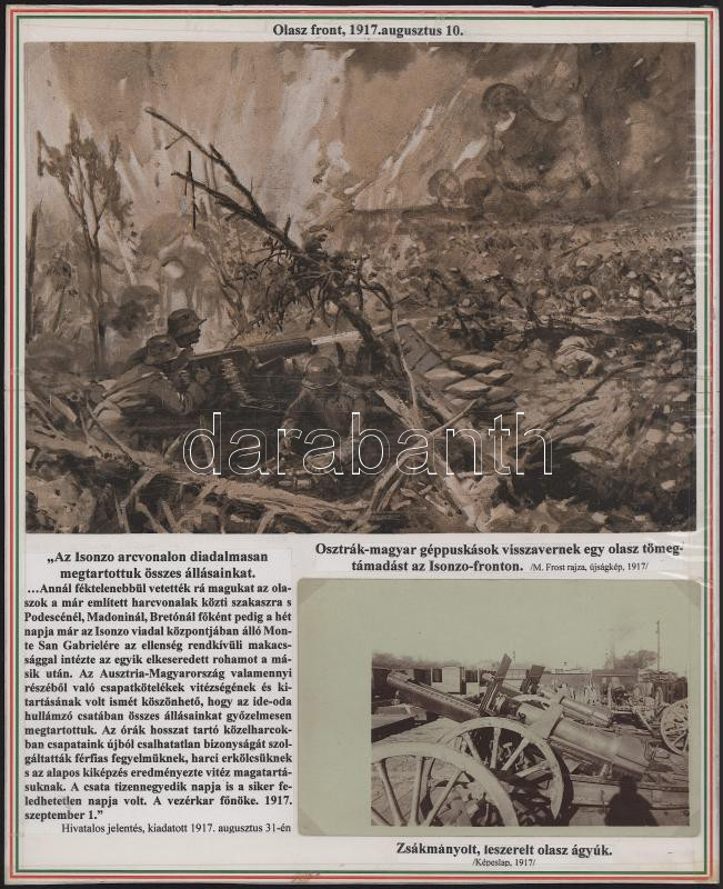1914-18 Az I. világháborús olasz frontot bemutató gyűjtemény korabeli fotókkal, eredeti képeslapokkal, újságkivágásokkal 7 db nemzeti szÃn szegélyű tablón kÃsérÅ‘ szövegekkel. (A képek leszedhetÅ‘ek)
