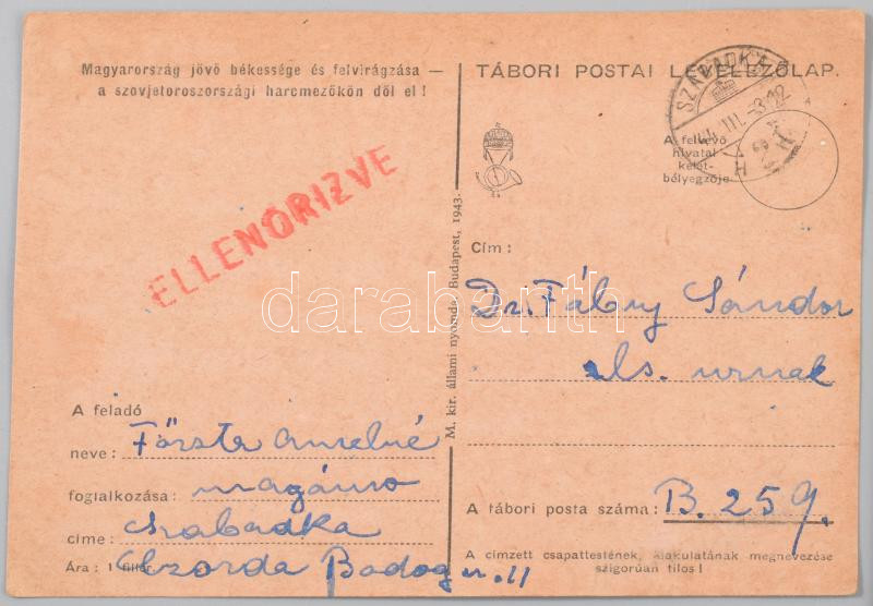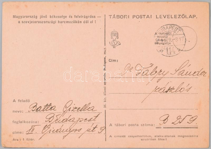 1942-43 Fábry Sándor huszár zászlós tábori levelezése kb 300 db.