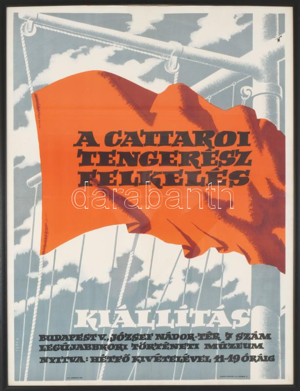 1958 Fery Antal (1908-1994): A cattaroi matrózfelkelés 40-ik évfordulójára rendezett kiállítás plakátja, Magyar Hirdető, [Bp.], Állami Nyomda, üvegezett keretben, hajtott, javított, 71x51 cm