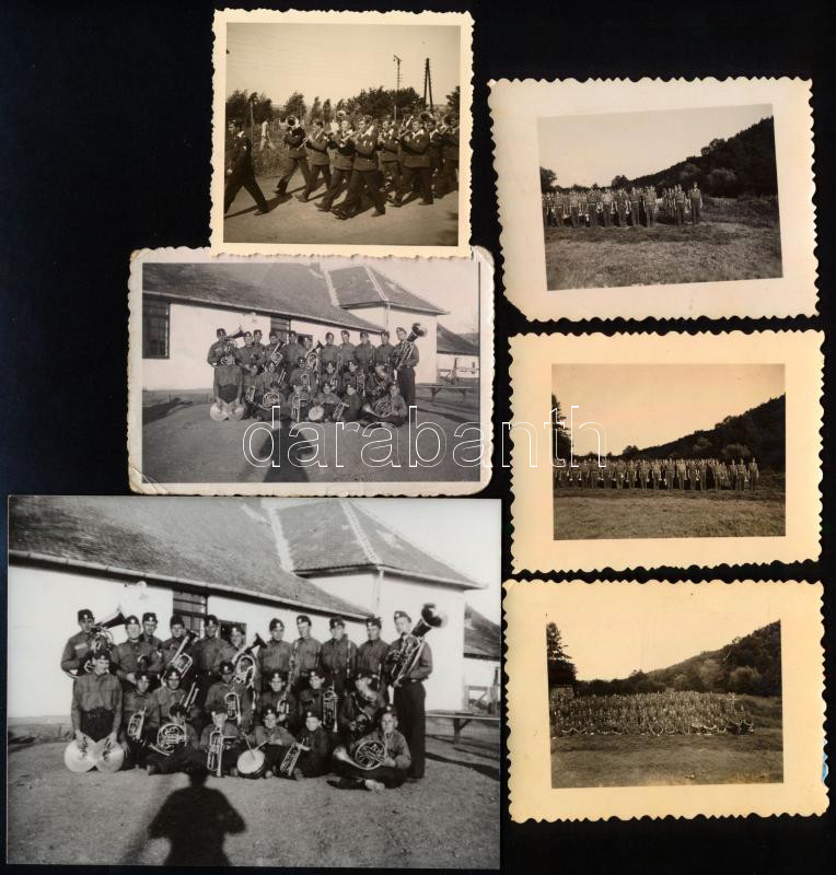 Levente csoportképek, zenekarok, 6 db fotó, közte egy modern előhívás, 6x6 cm és 9x12 cm között