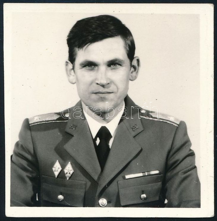 Magyar Néphadsereg, vegyivédelmi tiszt portréja, fotó, 6x6 cm