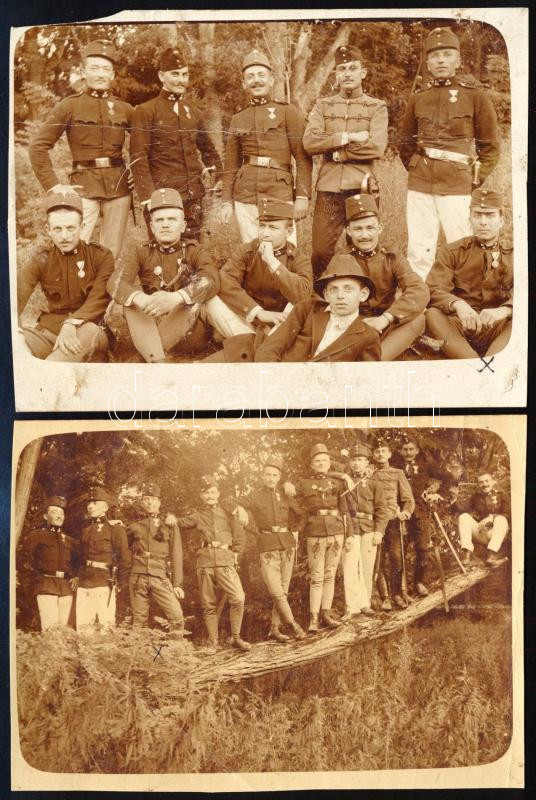 cca 1910-1915 Csoportképek kitüntetett katonatisztekkel, 2 db fotólap, kissé viseltes állapotban, körbevágva, 9x11,5 cm körül