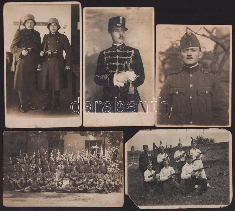 cca 1920-1945 Vegyes katonai fotó tétel, 5 db, sérülésekkel, 11,5×8,5 cm és 9×14 cm