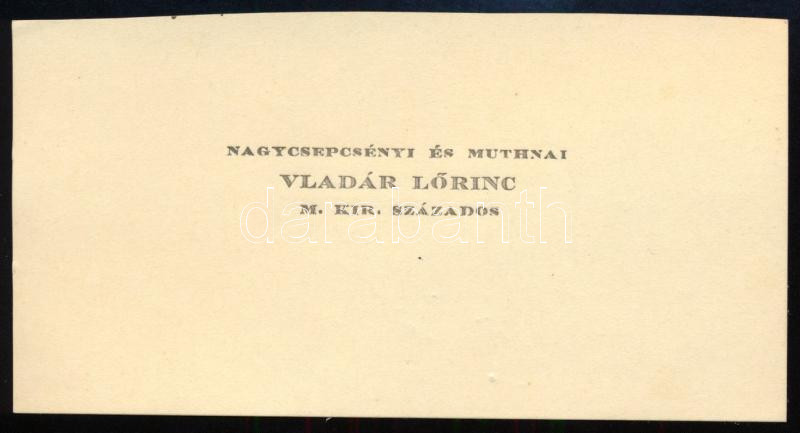 cca 1940-1944 nagycsepcsényi és muthnai Vladár Lőrinc m. kir. százados névjegykártyája, 6x11 cm