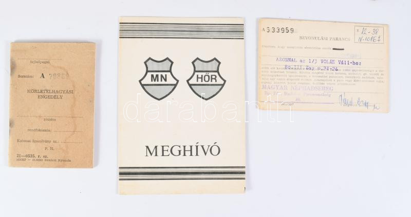 cca 1960-1985 Vegyes katonai iratok: bevonulási parancs, gépjármű-parancsnoki igazolvány, meghívók, emléklapok, stb., összesen 14 db