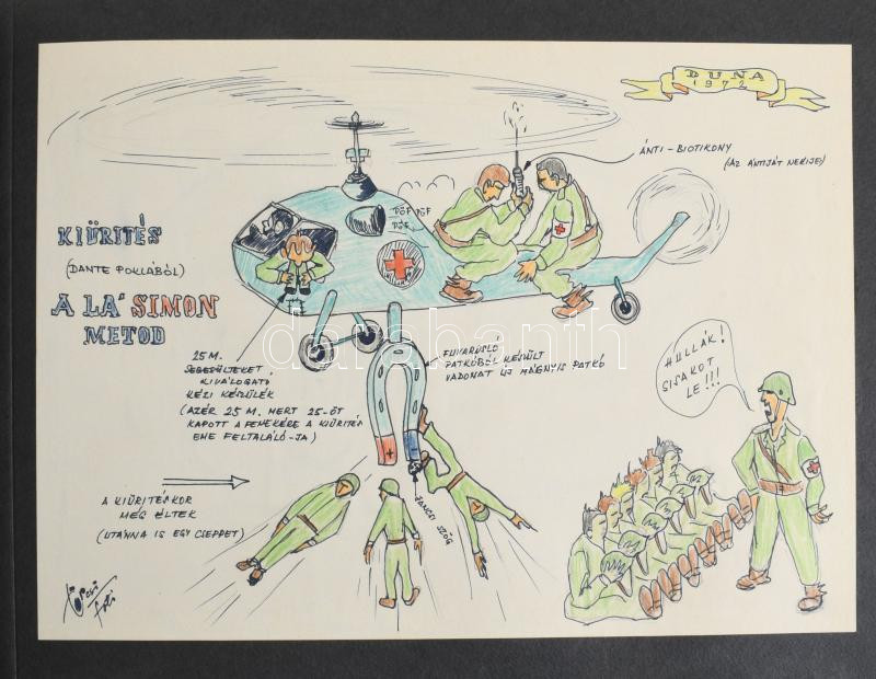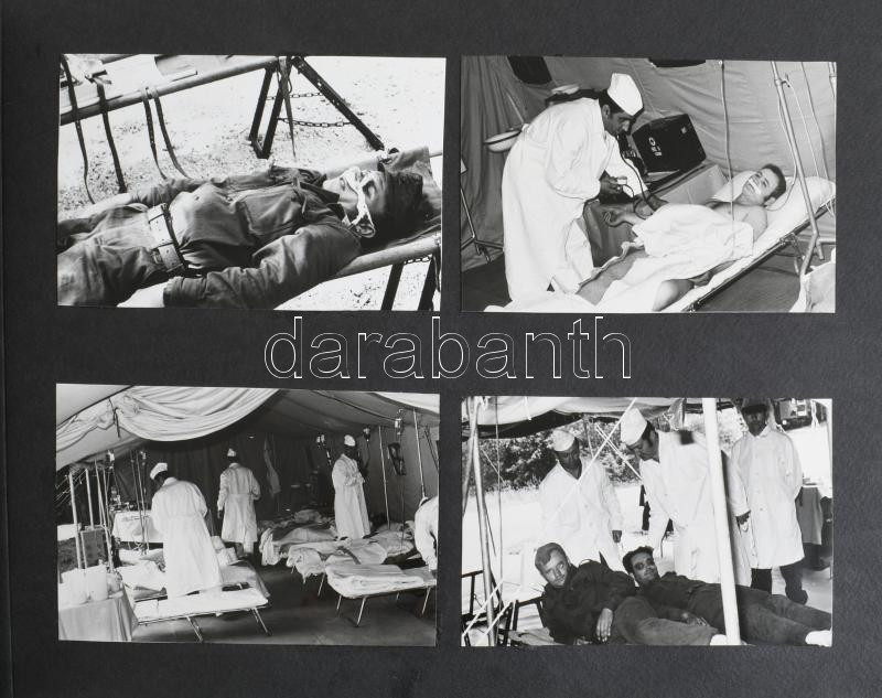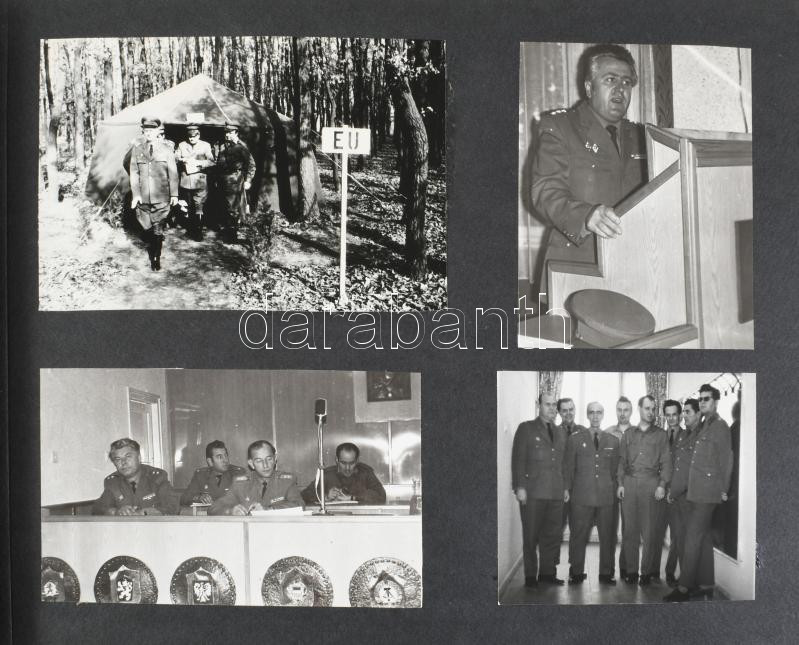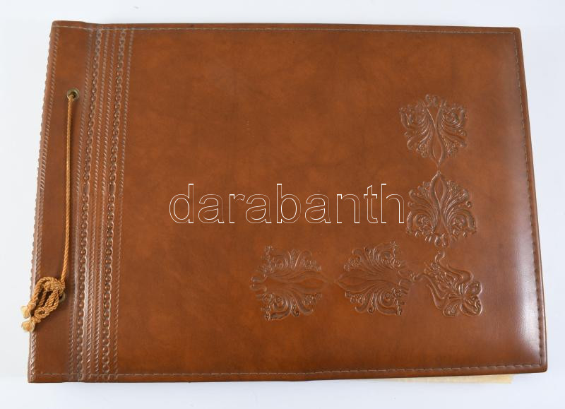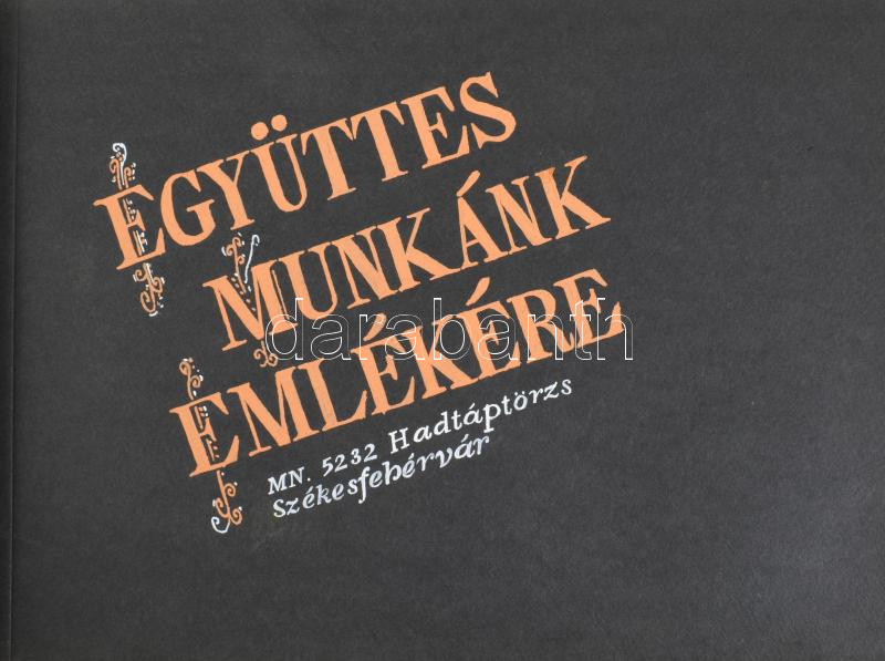 cca 1970-1980 "Együttes munkánk emlékére, MN. 5232 Hadtáptörzs Székesfehérvár", katonai emlékalbum, benne gyakorlat fotói, orvosi vizsgálat, sebesült katonák ellátása, rajzok, vers, stb. Díszes, zsinórfűzéses műbőr-kötésben, 26x36x3 cm