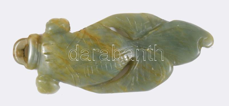 Zöld jáde hal szimbólum, faragott, h: 7 cm