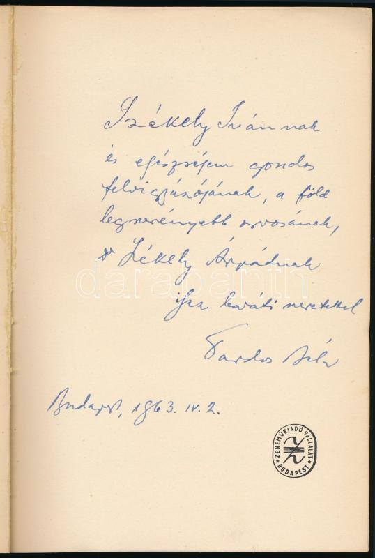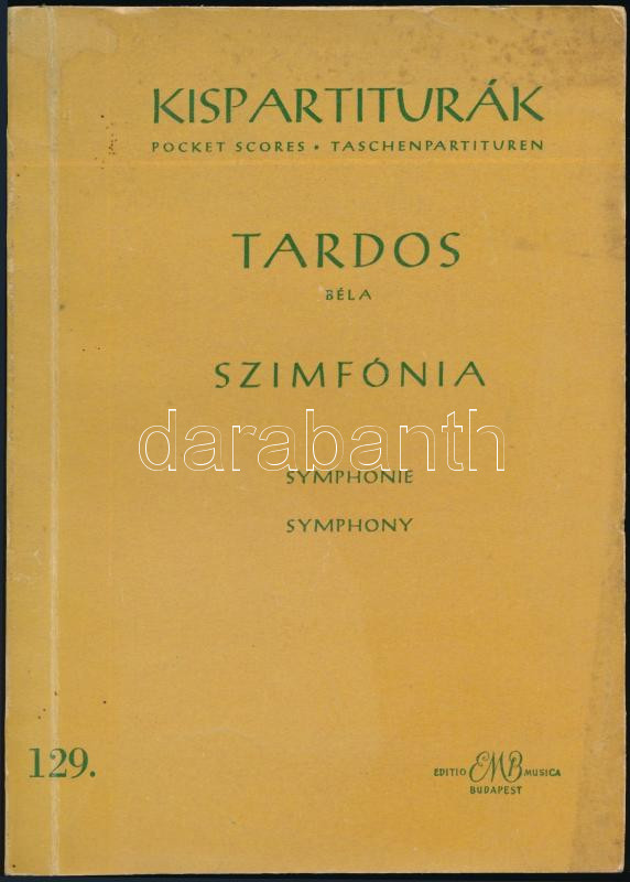 Tardos Béla: Szimfónia. In memoriam martyrum. A szerző, Tardos Béla (1910-1966) Erkel Ferenc-díjas zeneszerző által dedikált példány! Kispartiturák 129. Bp., 1963, Zeneműkiadó, 110+[2] p. Kiadói papírkötés, kissé foltos borítóval.