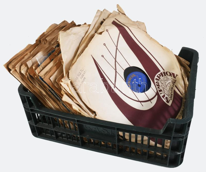 Egy láda gramofon lemez ca 1940-1950, kb 60 db