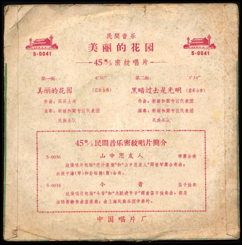 Kínai bakelit kislemez: Meili De Huayuan (S-0041). Vinyl, 7", 45 RPM. Zhongguo Changpian, Kína. VG, a tok kissé viseltes