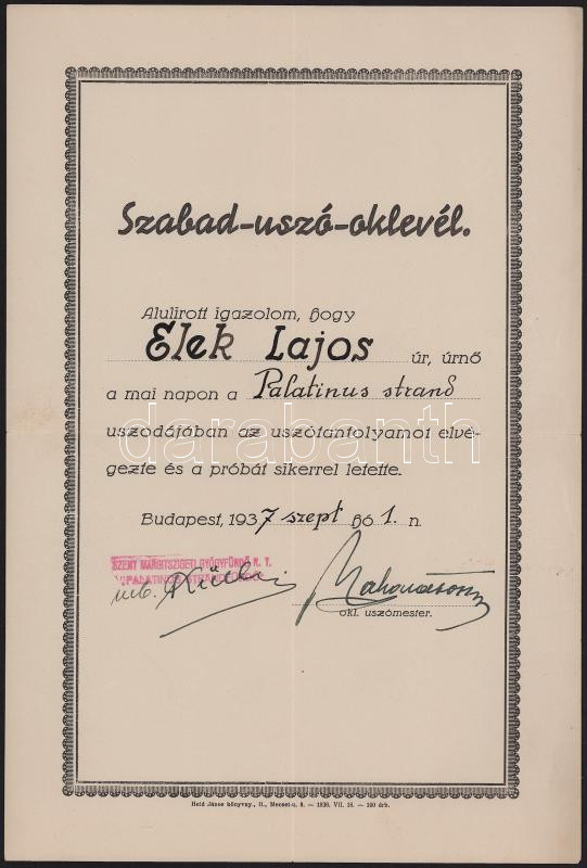 Szabad-uszó-oklevél