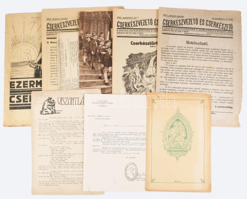 ca 1925-1935 10 db klf cserkész nyomtatvány, újság, meghívó