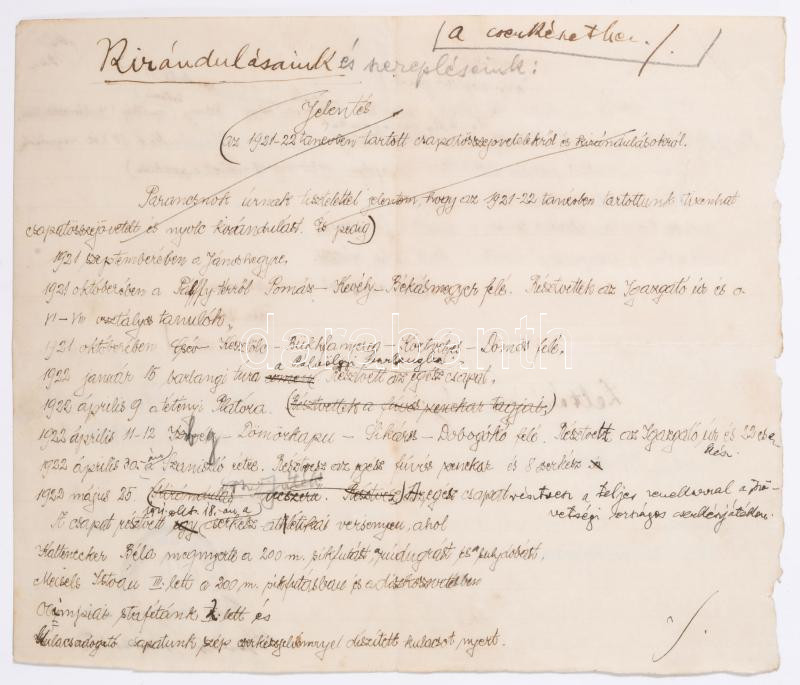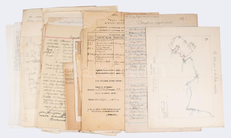 ca 1930 Cserkész gyűjtemény kb 70 db vegyes cserkész feljegyzés: kézzel rajzolt térképek, csapatnévsor, szolgálati beosztás, más érdekes feljegyzések, stb.