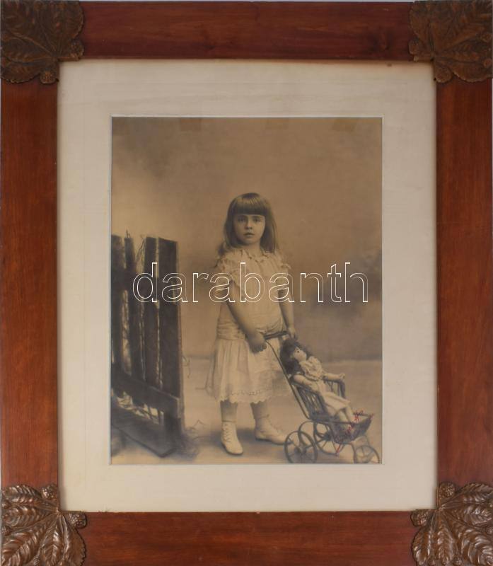 Nagy méretű dekoratív fa képkeret sarkain poncolt rész díszítéssel, szép állapotban. ca 1920. Külső méret 68x78 cm