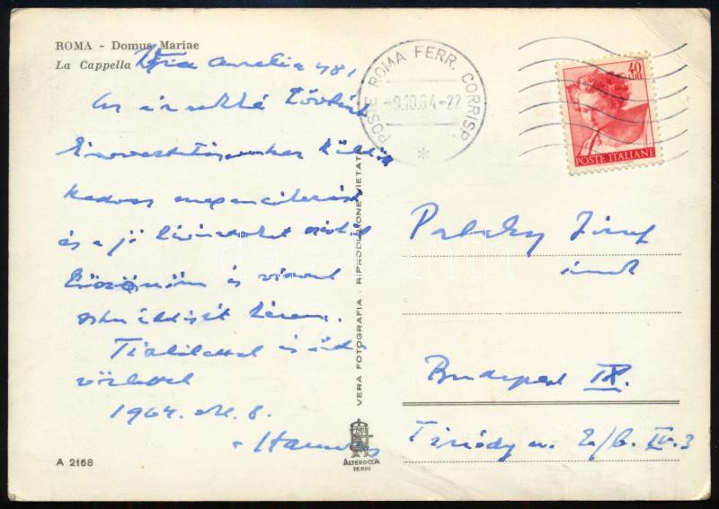1964 Hamvas Endre kalocsai érsek által írt képeslap