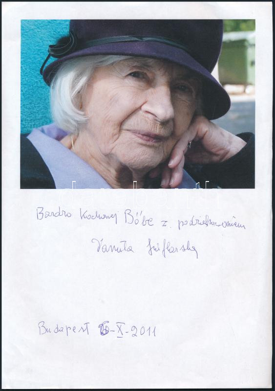 Danuta Szaflarska (1915-2017) lengyel színésznő autográf aláírása és sorai nyomtatott képen / Autograph signature of Danuta Szaflarska (1915-2017) Polish actress
