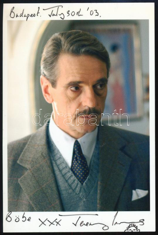 Jeremy Irons (1948-) angol színész autográf aláírása és sorai őt ábrázoló fotón, 15x10 cm / Autograph signed photo of Jeremy Irons (1948-) English actor