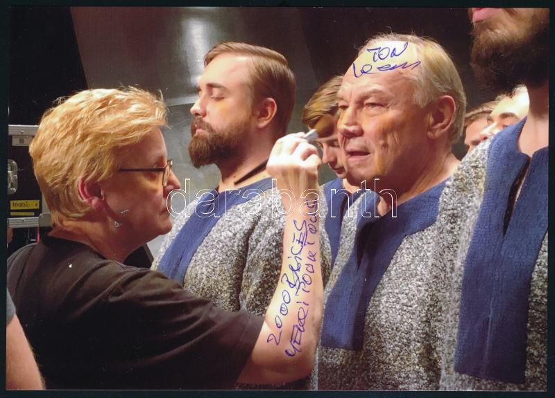 Klaus Maria Brandauer (1943-) Golden Globe-díjas osztrák színész, rendező autográf aláírása és sorai őt ábrázoló fotón, 12,5x18 cm / Autograph signed photo of Klaus Maria Brandauer (1943-) Austrian actor and director