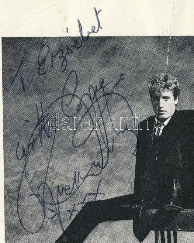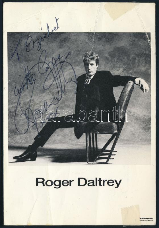 Roger Daltrey (1944-) angol énekes, zenész, színész, dalszerző, a The Who rockegyüttes egyik alapító tagjának autográf aláírása és sorai őt ábrázoló képen, kisebb törésnyomokkal, 15x10 cm / Autograph signed photo of Roger Daltrey (1944-) English singer, musician, actor, songwriter, co-founder of the rock band The Who, with minor faults