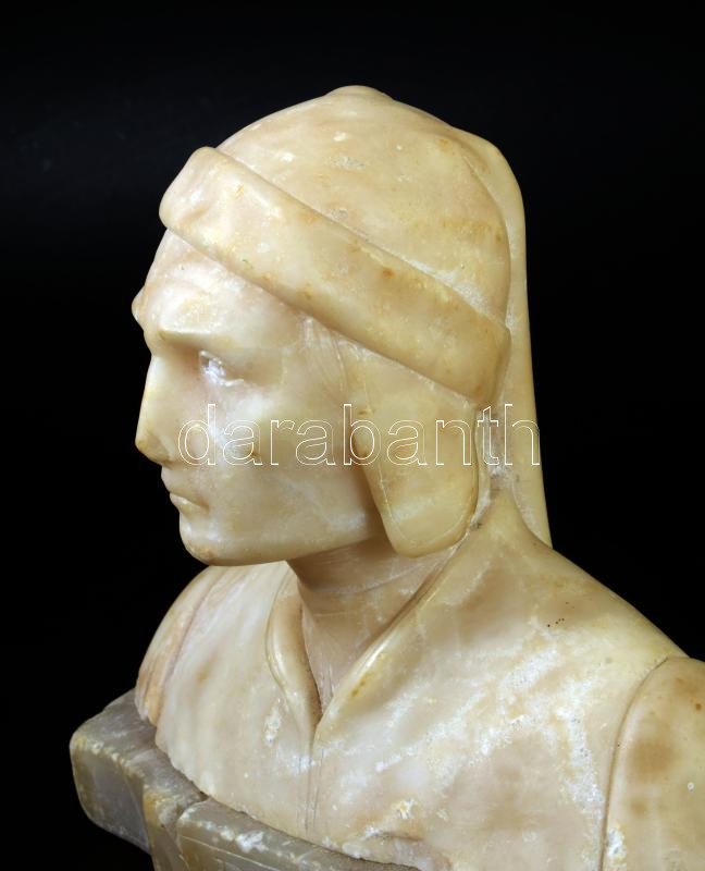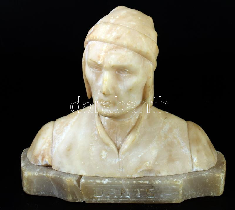 Dante alabástrom büszt, kopással, m: 16 cm