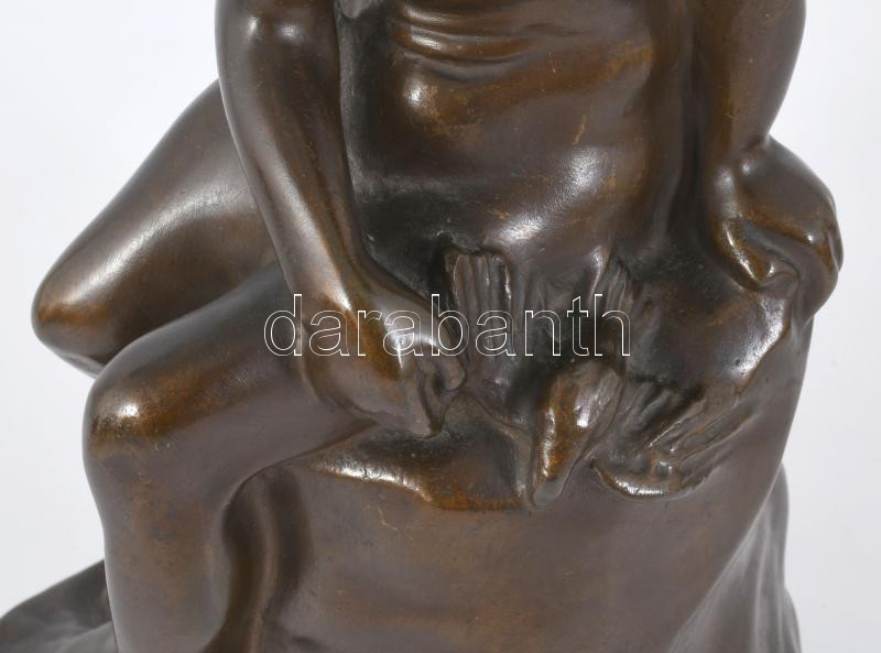 Sztankó Gyula (1900-1943): Fiú madárral. Patinázott bronz, 1929, jelzett, m: 30 cm