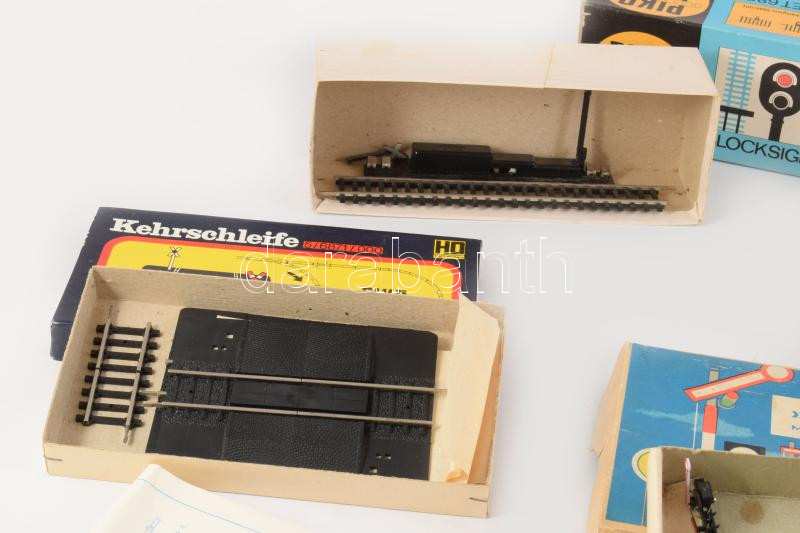 Doboznyi vegyes Piko makett vasút jelzőtáblák, többségében eredeti dobozukban.