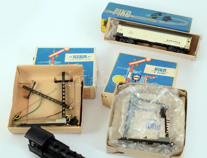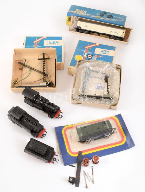 Doboznyi zömmel Piko vasúti kocsi, jelzőtábla, alkatrészek.