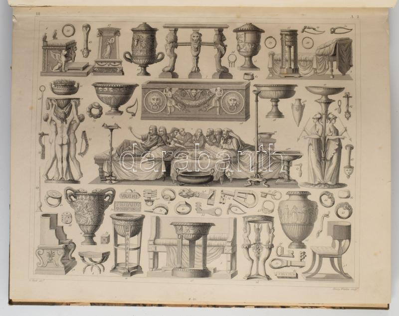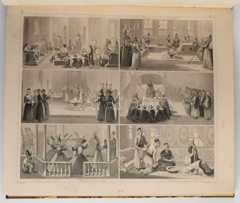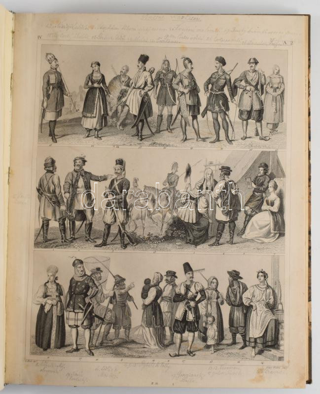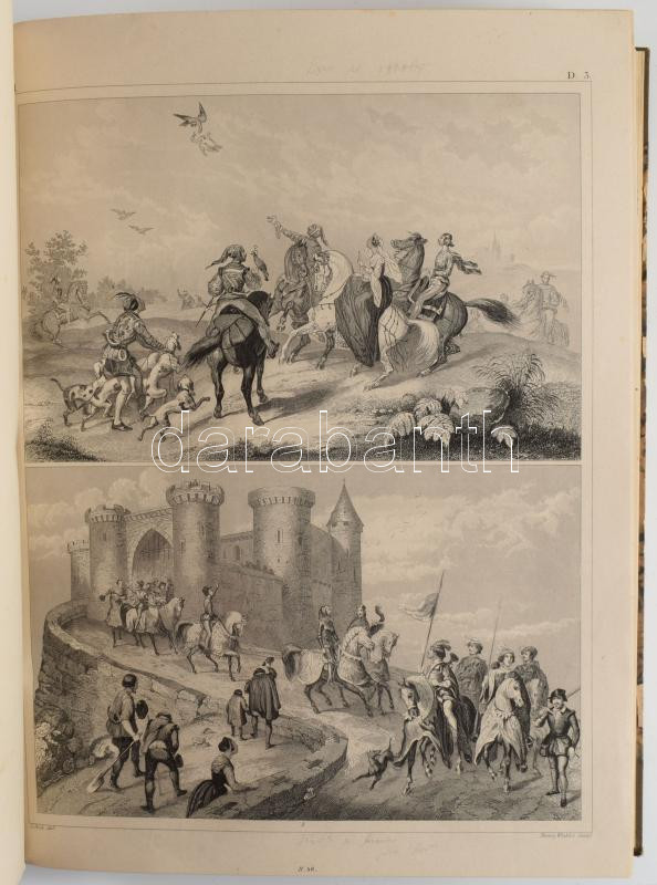Henry Winkles (1801-1860) 62 db történelmi, építészeti és viselettörténeti acélmetszet címlap nélkül. Jó állapotban, néhány lap széle restaurált 24x30 cm Későbbi félvászon kötésben