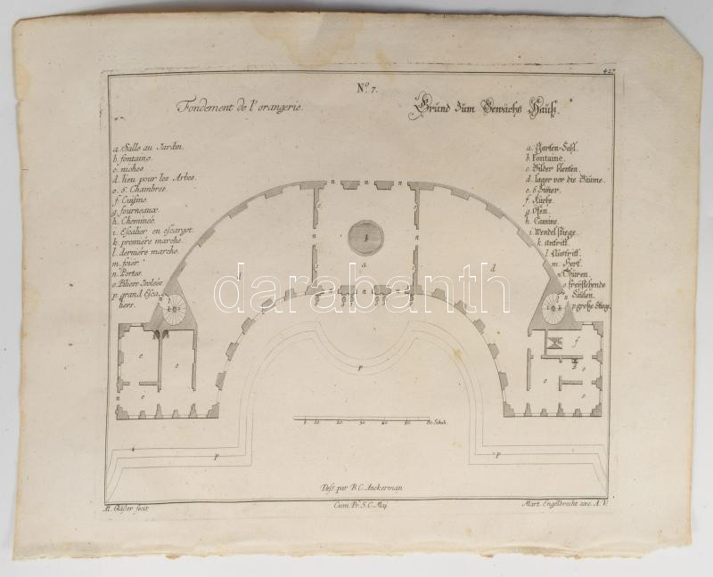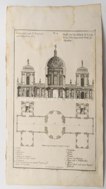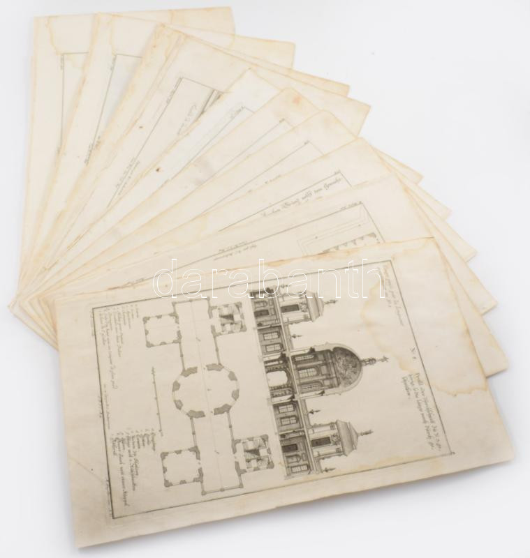 Martin Engelbrecht - Alexander Gläser, Augusta Vindel: kastélyok, épületek Vegyes építészeti metszetek. ca 1730 10 db Rézmetszet. / Architectural plans of different castles and buildings. Engravings 10 pcs 39x24 cm