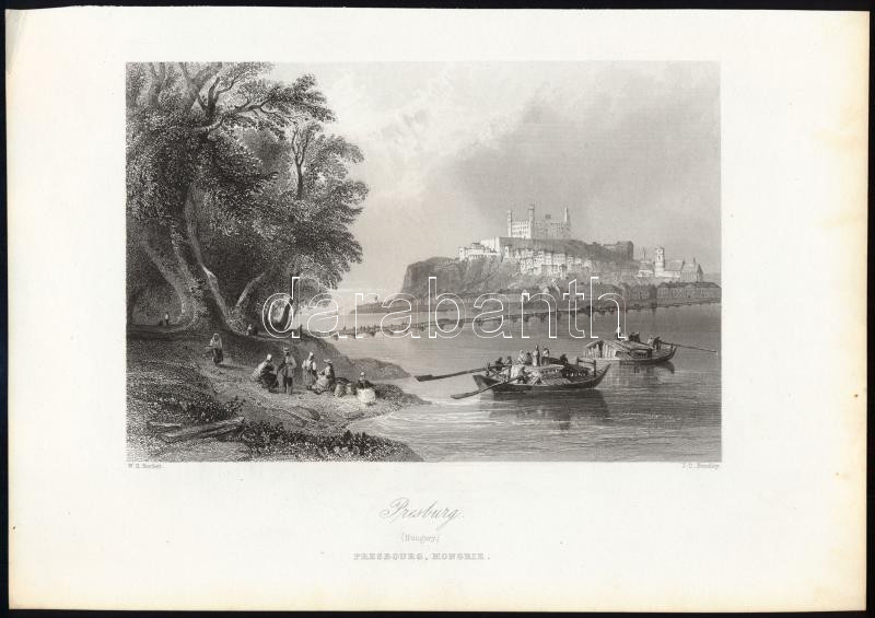William Henry Bartlett (1809-1854) - Joseph Clayton Bentley (1809-1851): Pozsony (Pressburg). Acélmetszet, papír, jelzett a metszeten, 12x18 cm