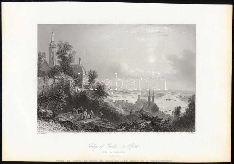 William Henry Bartlett (1809-1854) - Robert Wallis (1794-1878): Buda látképe (City of Buda, or Ofen). Acélmetszet, papír, jelzett a metszeten, 12,5x18 cm