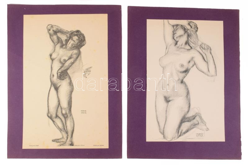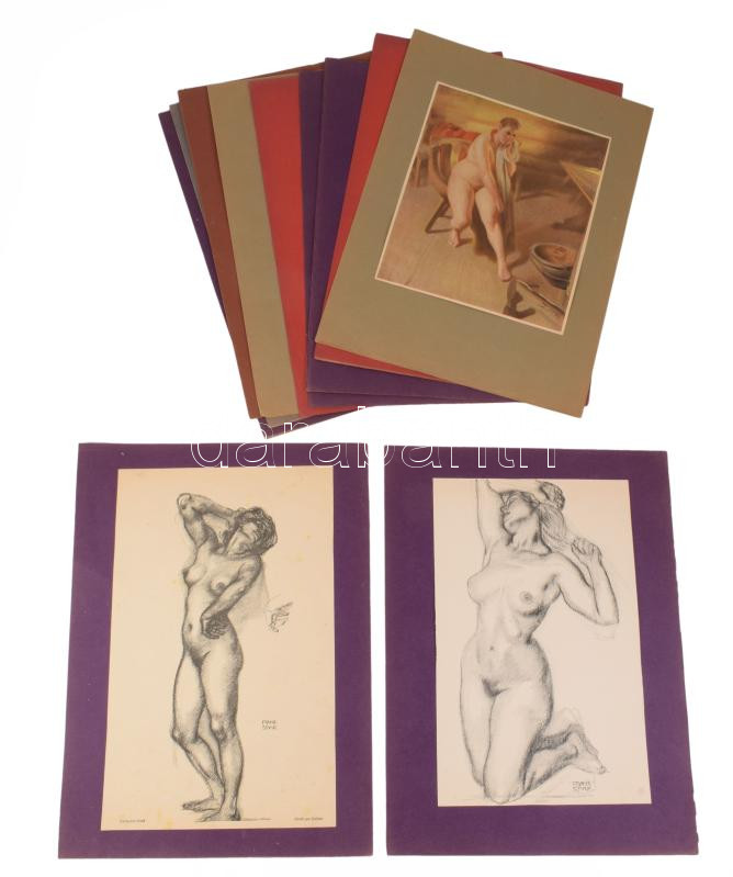 ca 1930 12 db nagy méretű erotikus nyomat Franz Stuck litho reprodukciók 24x28 cm Kartonokon