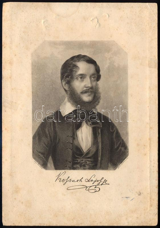 cca 1850 Barabás Miklós (1810-1898): Kossuth Lajos portréja, metszet, foltos, 18,5×13 cm