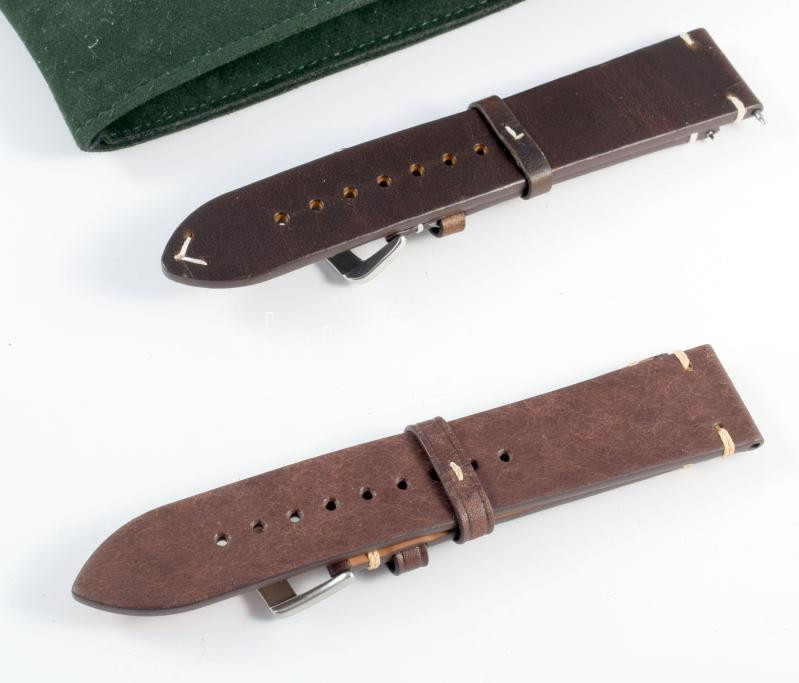 2 db igényes marhabőr óraszíj, nem használt, óratartóban 22 mm