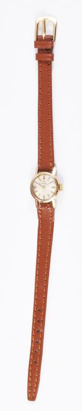 Omega női karóra, mechanikus, működik, foltos számlap, d: 18mm