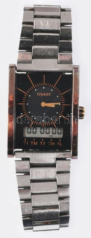 Tissot részben digitális karóra, fém szíjjal, karcokkal, 34x26mm