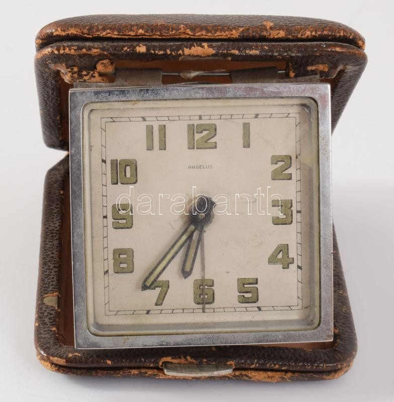 Antik Angelus utazóóra, kissé sérült tokban, 9x7 cm
