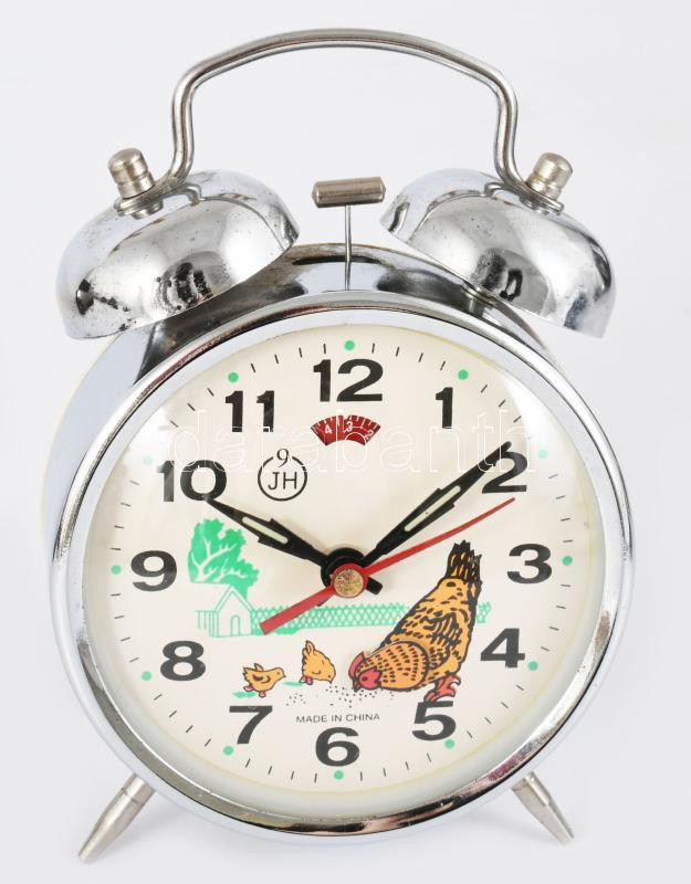 Kínai vekkeróra, csipegető tyúk figurával, m: 13 cm
