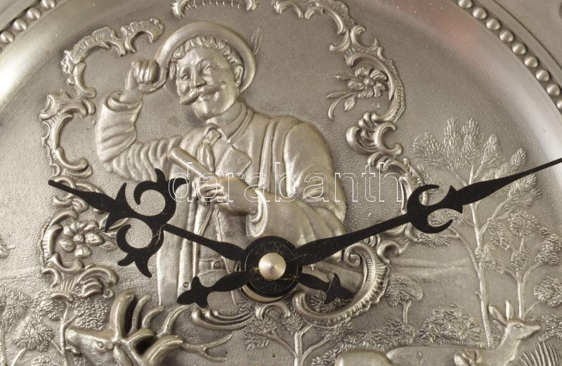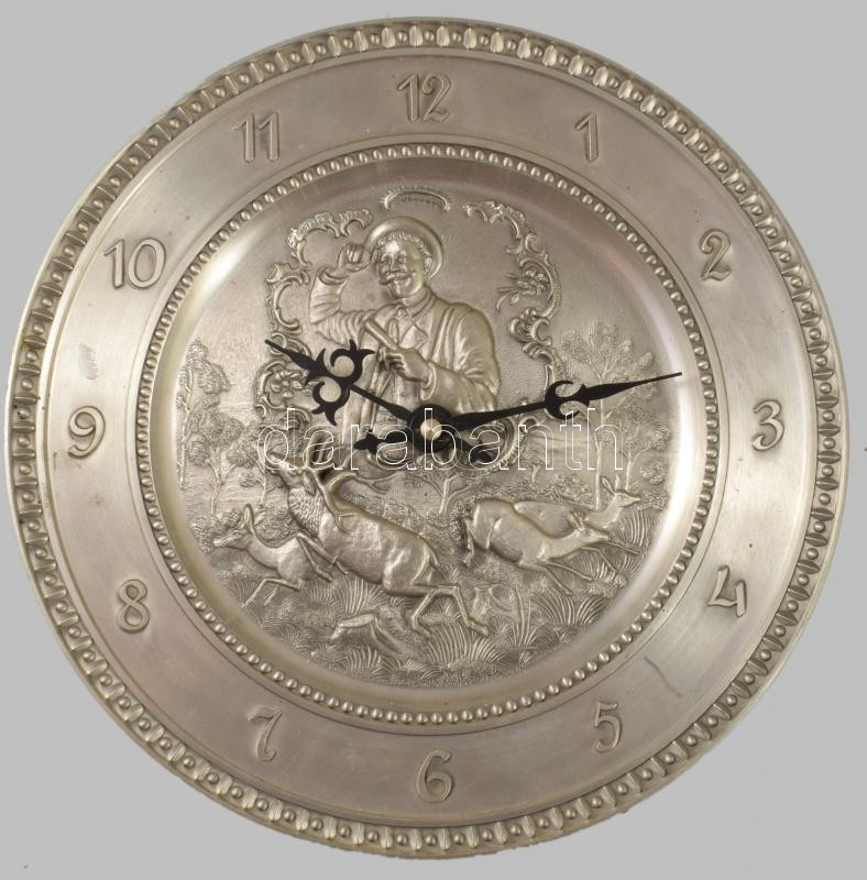 Vadász falióra ónból kvarc szerkezettel d: 26 cm
