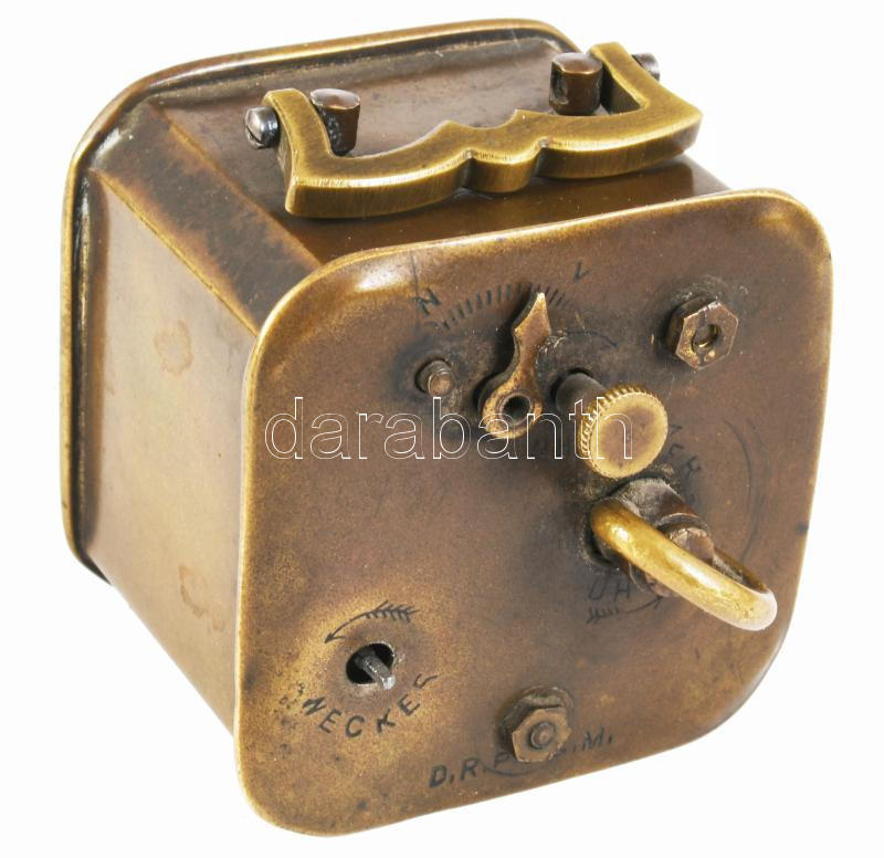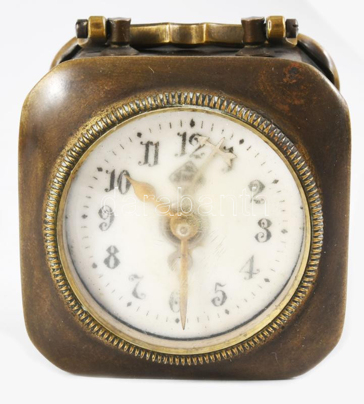 cca 1900 Német utazóóra, bronz, kopással, működik, 5x5x5 cm