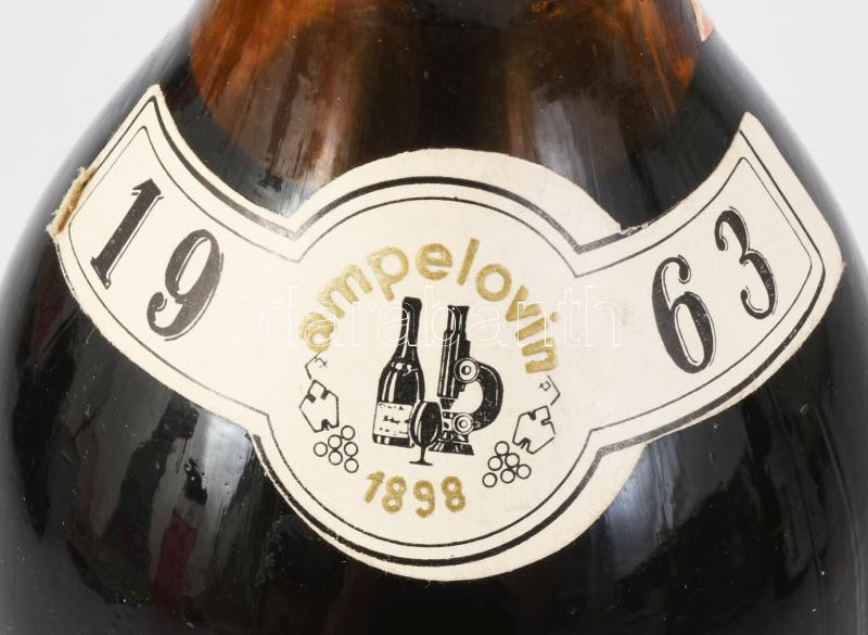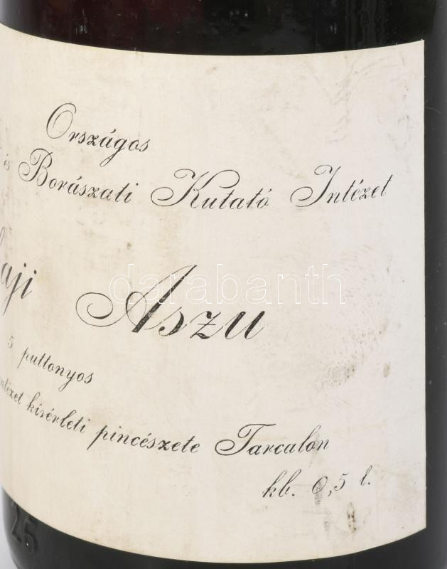 1963 Tokaji Aszú, 5 puttonyos, Tarcal, Országos Szőlészeti és Borászati Kutatóintézet, bontatlan palack, édes, fehér desszertbor, a palack fejét később leviaszolták, 0,5l