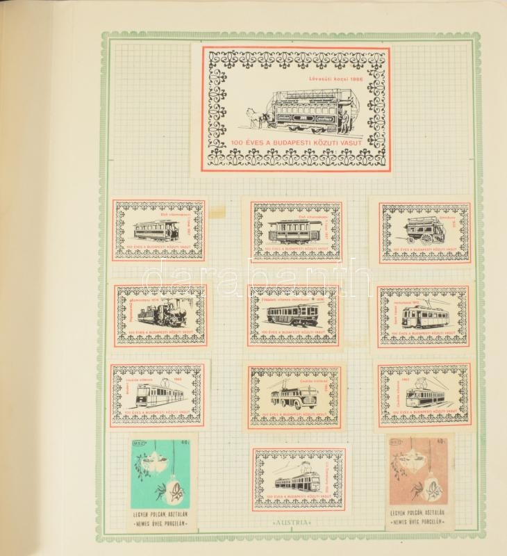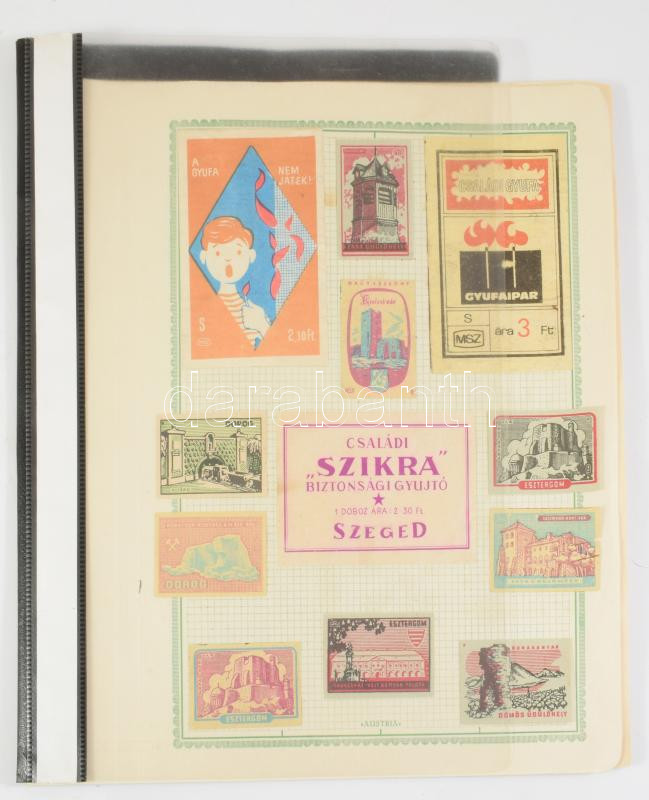 1960-1970 Vegyes gyufacímketétel, berakóban, 16 lapra ragasztva, magyar gyufacímkékkel, kb. 200 db.