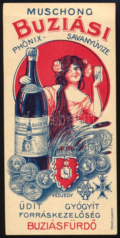 A buziási (Erdély) Muschong Phönix savanyúvíz szecessziós számolócédulája